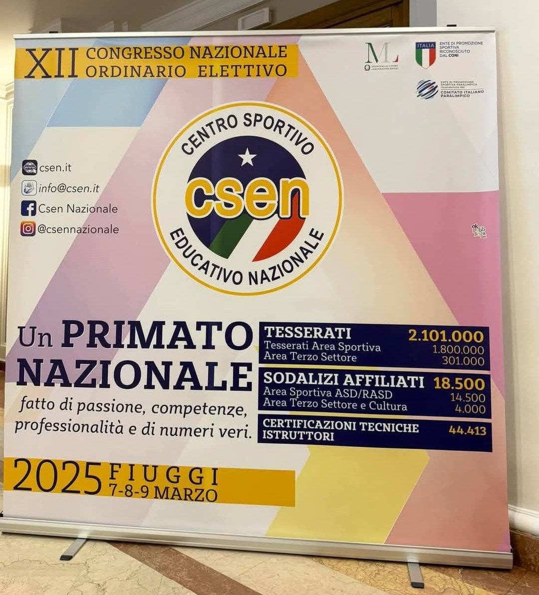 Tre giorni intensi di confronto, elezioni e dibattiti hanno caratterizzato il XII Congresso Nazionale CSEN, svoltosi presso l’Ambasciatori Place Hotel di Fiuggi (FR). L’evento, svoltosi fra venerdì 7 e domenica 9 marzo 2025, ha visto la partecipazione dei principali rappresentanti del Centro Sportivo Educativo Nazionale in un appuntamento chiave per il futuro dell’ente e del movimento sportivo italiano.