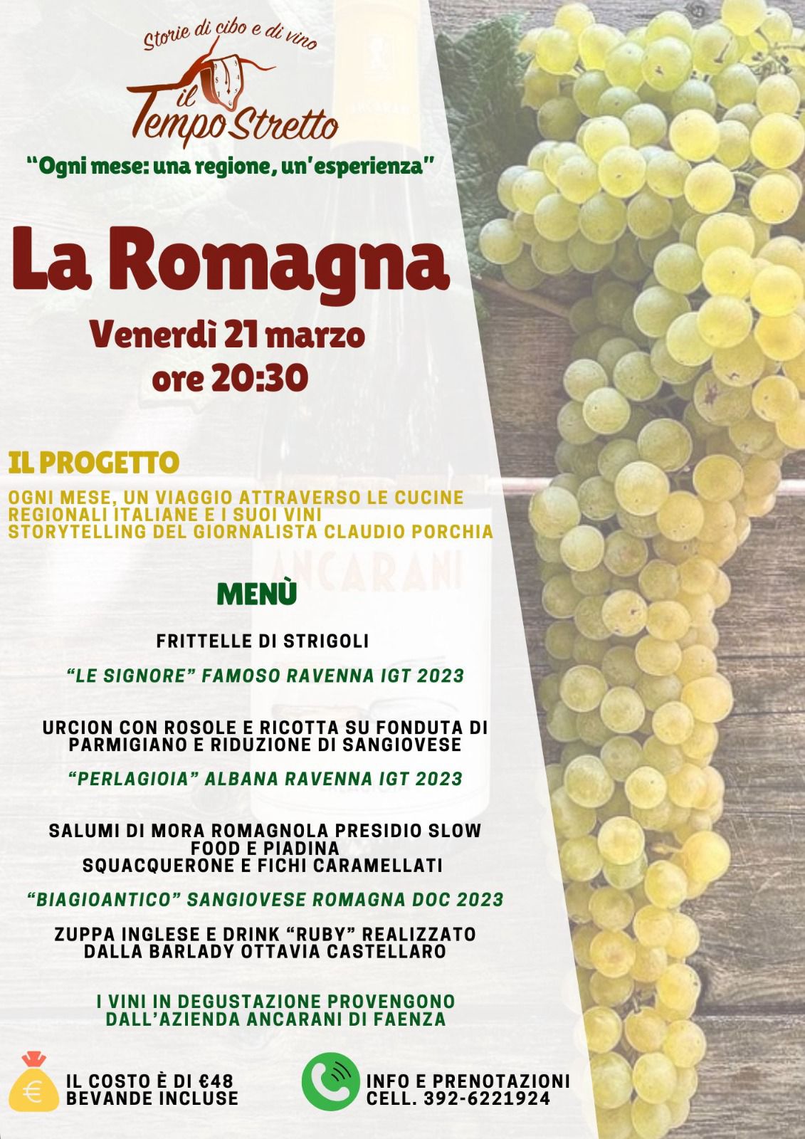 Il costo della serata è di 48 euro, bevande incluse. Un'opportunità unica per scoprire i sapori autentici della Romagna, in un'atmosfera conviviale e accogliente.