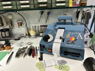 Ritornando, invece, a raccontare la storia dell’attività, Censi ripercorre gli anni in cui tutte le alluvioni passate hanno distrutto gran parte del negozio: “Nel 1970, in via Canevari, l’attività è stata totalmente travolta e ci ha portato via ogni bene possibile: attrezzature, macchinari ma anche storie. Fortunatamente metà della merce ci è rimasta, ad esempio il tornio bagnato, il Vibra B200 (un crono comparatore) del 1972, che all’epoca costava un milione e ottocento mila lire, mentre oggi costa circa otto mila euro”.