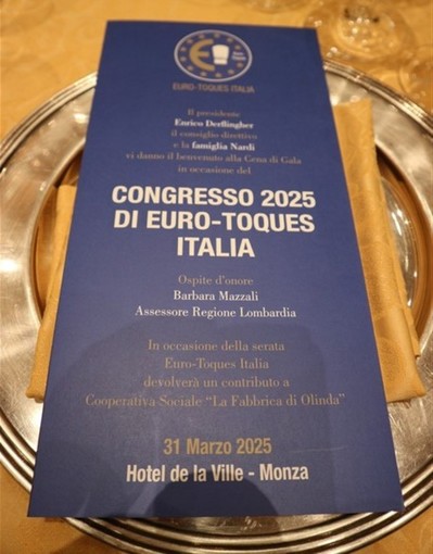 Alla fine della serata, Euro Toques ha offerto un contributo economico alla cooperativa sociale “La Fabbrica di Olinda” (https://www.olinda.org/), poiché tra gli obiettivi di Euro Toques ci sono anche la solidarietà e il supporto alle iniziative sociali.