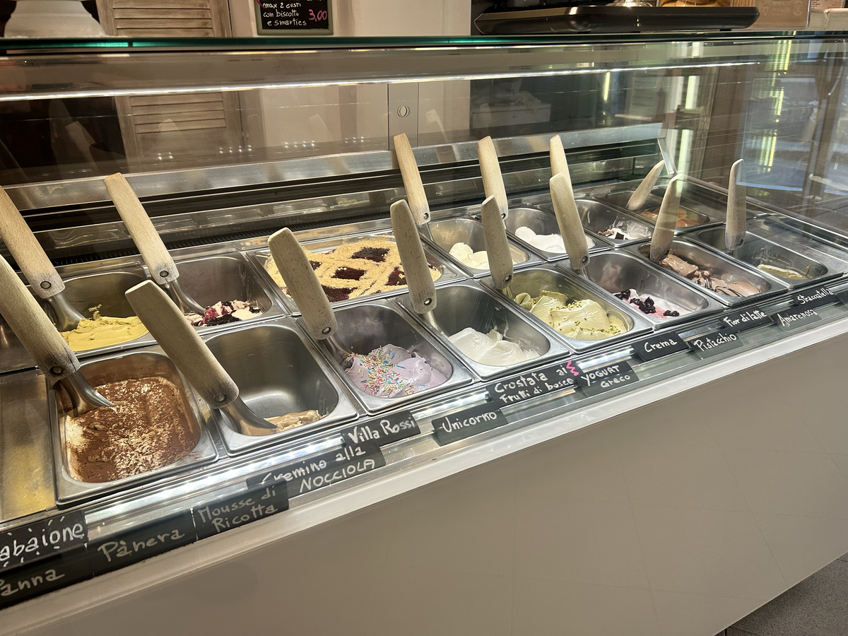 Tra i gusti più apprezzati, certamente è il pistacchio: "Questo è assolutamente il più richiesto dalla nostra clientela - afferma -. Anche il gusto 'Villa Rossi', in onore della nostra splendida Villa, che unisce cannella e frutti di bosco, piuttosto che il gusto 'Baciccia': amiamo dare nomi particolari e intriganti, anche perché sono capaci di catturare l'attenzione e di creare curiosità nelle persone. Poi tra i più apprezzati anche i semifreddi, come lo zabaione, la panera o la mousse di ricotta, che come dicono i clienti 'crea dipendenza'".