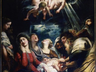 Il dipinto, dal 1605 sull’altare maggiore della chiesa, segna l’inizio della sensibilità barocca: la scena, divisa tra terrena e ultraterrena, viene animata dalla luce divina che squarcia le tenebre per ricadere su Gesù Bambino.