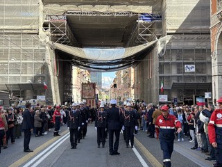 Poi il vicesindaco reggente ha ricordato la storia della liberazione di Genova: “È l'unica città europea ad essersi liberata da sola, i genovesi devono essere fieri e orgogliosi di questa storia e nei valori di questa storia cercare le fondamenta per la costruzione della comunità del futuro. Ricordiamo con devozione e senso di ringraziamento il sacrificio di trecento caduti nei giorni dell'insurrezione, tremila feriti. Ricordiamo figure straordinarie della nostra città, come Teresa Mattei, una delle ventuno madri della nostra Costituzione. Ricordiamo Aldo Castaldi, il comandante Bisagno, il primo partigiano d’Italia. Il codice di Bisagno resta una lezione sempre attuale per la convivenza civile del nostro popolo. Ricordiamo Luciano Melis, la resistenza delle fabbriche, il più giovane partigiano caduto per la libertà il 24 aprile del 1945, e ricordiamo ancora Luciano Bolis e i tanti martiri il cui sangue prezioso costituisce un tributo fondamentale per la lotta di liberazione, per la nascita della nostra Costituzione. Per la prima volta in questa guerra, un corpo d'esercito si è arreso a un popolo. Così Paolo Emilio Taviani la mattina del 26 aprile 1945”.
