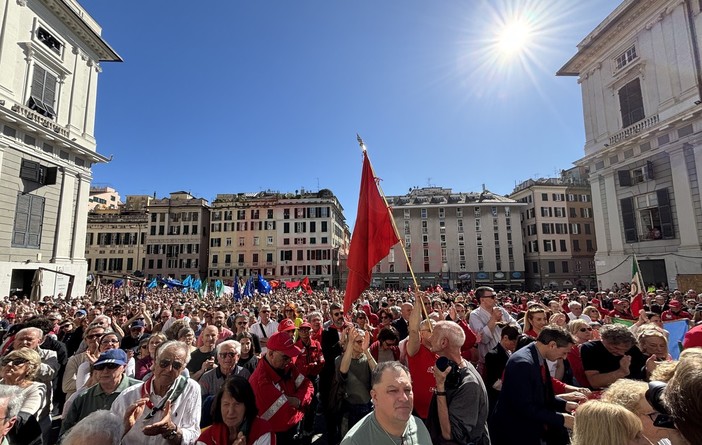 In piazza anche la candidata sindaca del centrosinistra, Silvia Salis: “È un messaggio meraviglioso, straordinario, in un anno speciale sia per la situazione contingente, sia per l’ottantesimo anniversario. Nessuno qui vuole abbassare il livello del ricordo, vogliamo che sia forte. Questa è una città che ha un legame particolare con il senso della democrazia e dalla libertà: Mazzini, Mameli, i Mille. Genova ha una storia commovente di democrazia. Essere genovese è un grande orgoglio tutti i giorni, oggi ancora di più”.