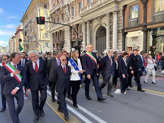 “Vogliamo una resistenza a difesa della libertà, a difesa della giustizia, a difesa della pace, a difesa della nostra vita e delle future generazioni - ha aggiunto - celebrazioni come quella di oggi ci aiutano a riflettere sul nostro passato, ma anche sul futuro che vogliamo costruire. Abbiamo la responsabilità di lasciare alle generazioni future un'Italia ancora più libera, più giusta, più solidale, con fratellanza verso tutti quelli che vivono con noi e soprattutto qui nella città di Genova. Questo significa promuovere il dialogo, il rispetto, la partecipazione, significa coltivare ogni giorno i valori della Costituzione affinché siano vivi, attuali e condivisi. Oggi, da Genova, riaffermiamo con forza l'impegno di tutti noi per la libertà, per la democrazia, per la pace, con grande gratitudine per chi si è sacrificato e ha dato la vita per questi valori, con grande determinazione nel difenderli e trasmetterli a tutti e con fiducia nel futuro che vogliamo costruire assieme. Ora e sempre resistenza per la pace, per la giustizia e per la libertà”.