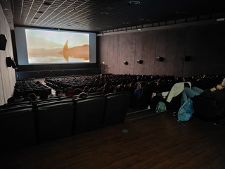 La visione si è svolta nella sala più grande e suggestiva della città, quasi completamente piena in ogni fila di posti. Protagonista sul grande schermo il film “Flow” del giovane regista lettone Gints Zilbalodis, capolavoro di animazione premiato in tutto il mondo e recente vincitore dell’Oscar per il miglior film d’animazione.