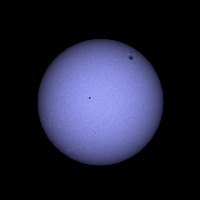 La seconda immagine del Sole è stata catturata con un telescopio rifrattore apocromatico Tecnosky SLD 80 OWL optics, equipaggiato con un filtro Calcio K-line. Questo filtro permette di penetrare più in profondità nell'atmosfera solare, rivelando la finissima granulazione della fotosfera, lo strato visibile del Sole, con la sua caratteristica struttura a celle convettive. L'immagine mette inoltre in risalto le enigmatiche macchie solari, regioni più fredde e scure sulla superficie solare, anch'esse legate all'intensa attività magnetica.