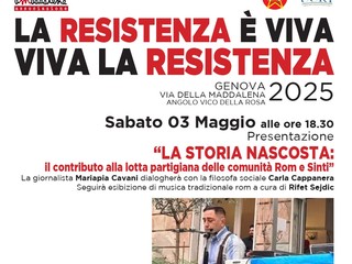 L’incontro del 3 maggio, intitolato “La storia nascosta: il contributo alla lotta partigiana delle comunità Rom e Sinti”, vedrà Cappanera dialogare con la giornalista Mariapia Cavani. L’appuntamento sarà accompagnato da un’esibizione di musica rom tradizionale a cura del musicista bosniaco Rifet Sejdic, da anni residente a Genova.