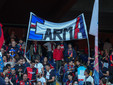 Tantissimi gli striscioni con sfottò coloriti (e spesso anche colorati di blucerchiato) diretti ai cugini tra le bandiere rossoblù che sventolano non solo in Gradinata Nord, dove a campeggiare è un grande striscione con lo slogan “Manfredi e Radrizzani, grazie”. Ci sono citazioni sulle possibili avversarie del prossimo anno, giochi di parole con richiami alla lettera “C” ma anche costumi e maschere da dinosauro o le immancabili bare.