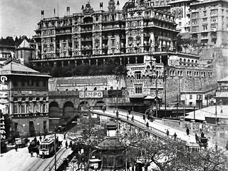 Progettato dall’architetto svizzero Arnold Bringolf e impreziosito dall’estro decorativo di Gino Coppedé, il Grand Hotel si mostrava con la sua imponente mole, sette piani di altezza, alleggerita dall’ampia facciata ritmata da ornamenti di vario tipo che interrompevano la collina alle spalle della stazione di Principe.