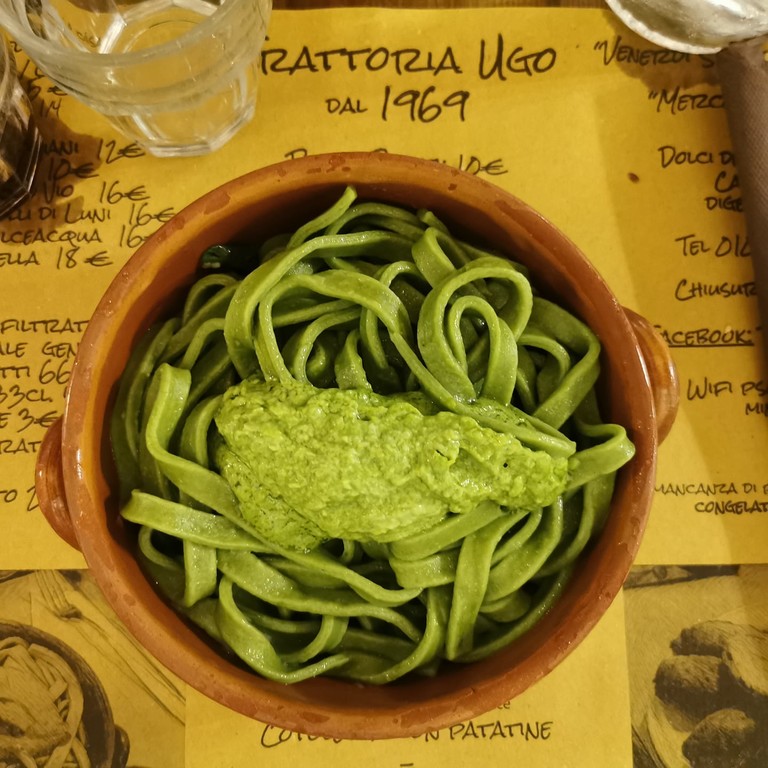 Oggi al timone del locale c’è Patrizia, la figlia di Ugo, che insieme al figlio Tiziano, terza generazione della famiglia, porta avanti l’attività con passione, lasciando spazio anche a idee nuove. “Prima del lockdown mio figlio voleva aprire una friggitoria con i nostri piatti, ma noi non eravamo convinti… Quando è arrivato il Covid ci siamo mangiati le mani. Alla fine gli abbiamo dato fiducia, ed è così che sono nati i due locali take away con il nostro marchio, uno in via Canneto il Curto e l’altro in via Balbi”. Qui si possono gustare i piatti storici di Ugo, tra cui l’immancabile pesto, ma in versione bowl.