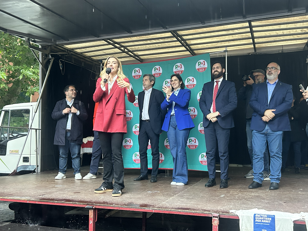 Poi l'appello al voto riguardo il referendum dei cinque si: "L’8 e il 9 giugno si vota anche per i referendum sul lavoro, e noi diciamo con forza: Silvia è dalla parte del lavoro. L’amministrazione può fare tanto per agevolare l’occupazione, può praticare una politica di prossimità. Non si governa chiusi nei palazzi, come fa Meloni: bisogna stare in mezzo alla gente, parlare con le buone imprese, chiedere di cosa hanno bisogno e come possiamo aiutarle".