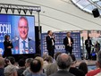 Tutto questo prima del gran finale, con la famiglia al completo sul palco e, in video, l’appello al voto dei figli.