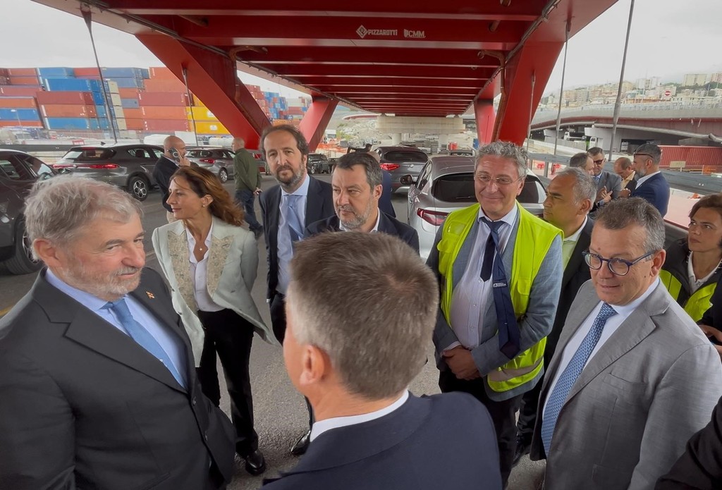 Salvini ha effettuato un sopralluogo tecnico in cantiere prendendo visione delle opere realizzate, tra le quali il nuovo Ponte del Papa, e dello stato di avanzamento dei lavori di prolungamento e potenziamento della sopraelevata portuale, completati ad oggi al 90%. Infatti, mancano poco più di 200 metri per concludere anche l’infrastruttura che rafforza l’esistente sopraelevata raccordandola alla nuova strada Superba attraverso il Ponte del Papa. Ultimato nel 2024, grazie alla struttura ad arco con impalcati a due livelli sovrapposti, metterà a disposizione dei mezzi in transito nel bacino portuale di Genova Sampierdarena quattro corsie di marcia sulla via in quota e altre due corsie a raso, predisposte per poter essere raddoppiate nei casi di emergenza. In questo modo, la nuova configurazione migliorerà significativamente la viabilità fluidificando gli ingressi ai varchi portuali. Il nuovo Ponte del Papa, vincitore del Premio OICE 2023 come miglior progetto per una infrastruttura stradale, è il primo ponte in Europa - e tra i primi 6 nel mondo - ad avere una struttura ad arco su due piani con un’unica campata di quasi 100 metri per un peso di 2.000 tonnellate.