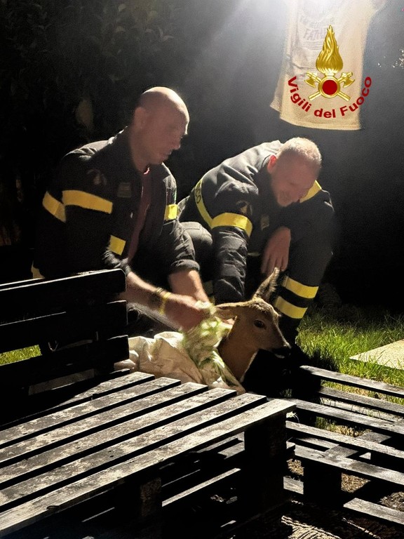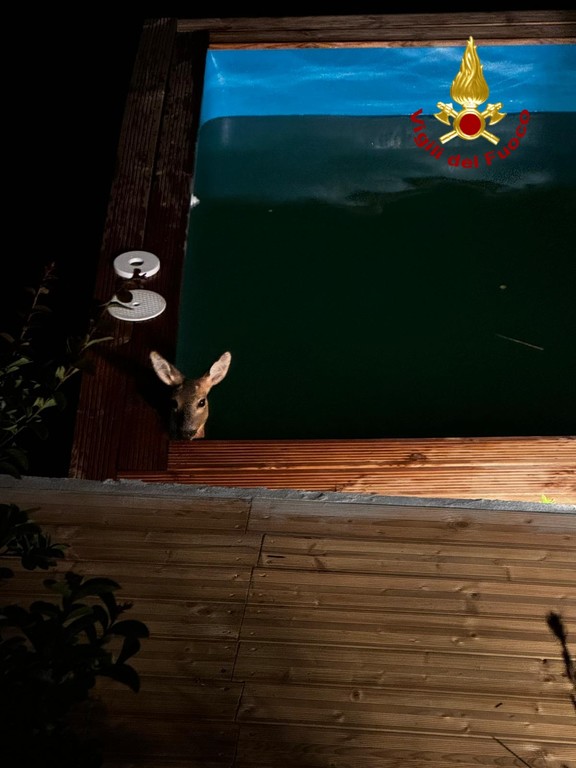 Intervento dei Vigili del Fuoco di Bolzaneto questa notte per soccorrere un giovane capriolo finito in una piscina.