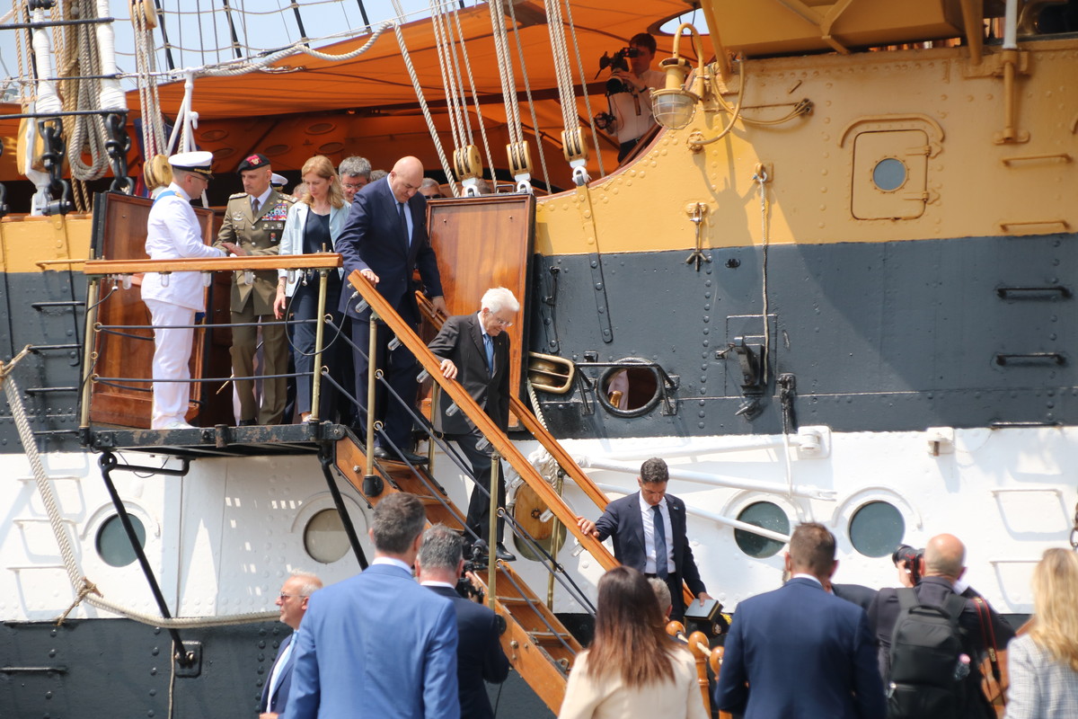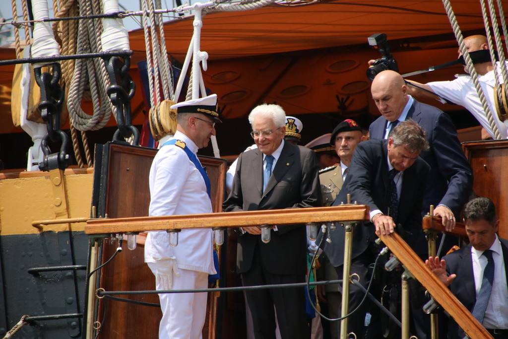 L’arrivo della Vespucci è stato accompagnato da un’imponente cornice navale a cui hanno preso parte, tra le altre, Nave Cavour, Nave Trieste e il sommergibile Scirè. Dopo aver consegnato le onorificenze e aver osservato il passaggio sui cieli genovesi delle formazioni di aerei F35B e AV8B dell’Aviazione Navale, Mattarella ha poi visitato l’imbarcazione salutando l’equipaggio.