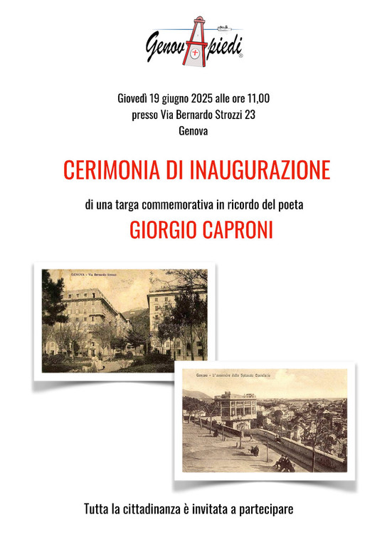 Una targa commemorativa per ricordare un poeta, Giorgio Caproni, e per omaggiare il suo legame con Genova attraverso le rime di uno dei suoi più famosi componimenti, ‘L’ascensore’.