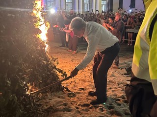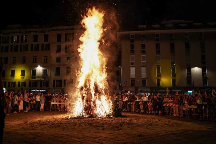 Alla cerimonia del falò ha preso parte anche il presidente della Regione Liguria Marco Bucci, rinnovando un rito che, nella notte tra il 23 e il 24 giugno, rinsalda il legame della comunità con le proprie radici storiche.