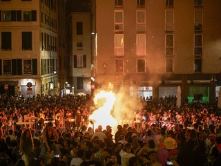 In migliaia ieri sera si sono ritrovati in piazza Matteotti per il tradizionale falò che segna l’avvio delle feste dedicate al santo patrono di Genova, san Giovanni Battista.
