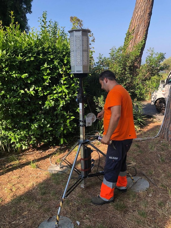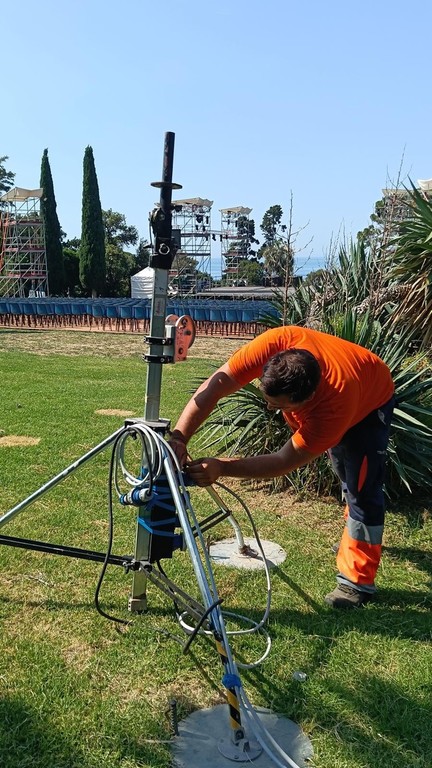 Dietro le luci e la magia del palcoscenico, il lavoro di A.S.Ter è essenziale per garantire la funzionalità e la sicurezza delle infrastrutture tecniche. L’azienda si distingue per un impegno costante e una rete di impianti progettati e realizzati con grande attenzione e cura dei dettagli. Il cuore pulsante di questo sistema è la cabina elettrica permanente, installata da anni nei pressi del roseto e perfettamente integrata nel contesto paesaggistico grazie a una struttura in legno a bassissimo impatto visivo. Da questa postazione si alimentano tutti gli impianti elettrici provvisori predisposti per la manifestazione, pronti a essere rimossi al termine dell’evento per restituire i Parchi di Nervi al loro splendore naturale.