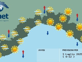 Cieli sereni o al più velati in mattinata sui settori centro-occidentali. A partire dalle ore centrali si svilupperanno i primi fenomeni convettivi sul comparto delle Alpi Liguri e sulle vette della Val d’Aveto, in estensione pomeridiana alle restanti vallate dell’entroterra di Levante con rovesci anche intensi e qualche colpo di tuono. Locali rovesci di breve durata saranno possibili sull’Appennino centro-occidentale nel tardo pomeriggio e in rapido esaurimento serale. Cieli sereni sui settori costieri fino al tardo pomeriggio, quando potranno subentrare delle velature, con maggior copertura sul Savonese e Imperiese.