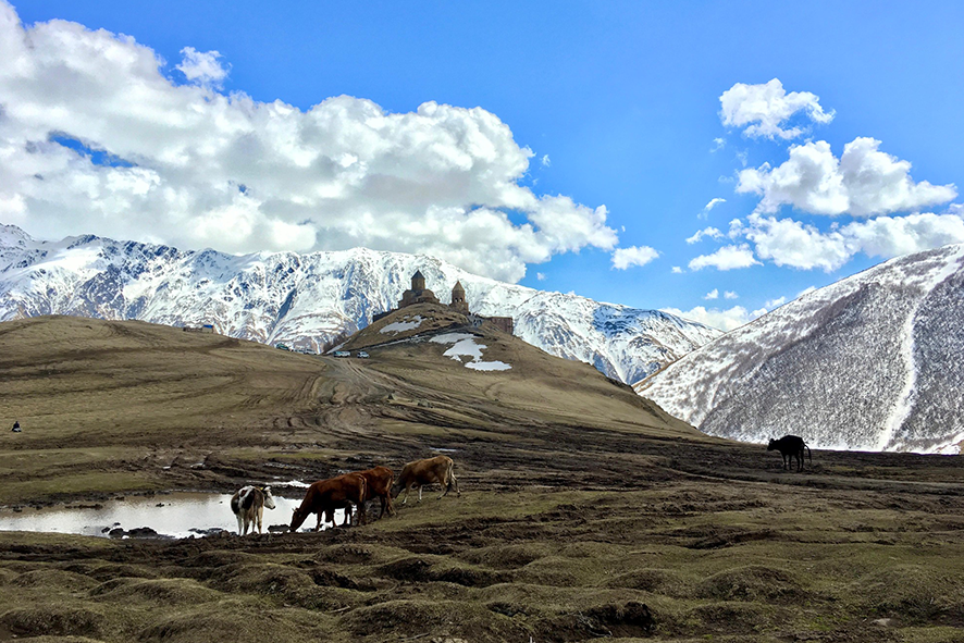 Non è stato semplice. Nel 2017 c’erano pochissime informazioni in italiano. Ho comprato una guida, spulciato qualche blog in inglese e disegnato uno schema di massima: poi mi sono affidata all’intuito. Il primo approdo è Tbilisi, la capitale. Mi ha stregata subito per le sue influenze: georgiane, armene, ebraiche e sovietiche. Caffè pieni di giovani, vecchi cortili in legno che cadono a pezzi, street-art e ponti avveniristici. E la cucina georgiana è stata vera una bomba: tra le più sorprendenti che abbia mai provato. Poi ho deciso di spostarmi e la prima tappa è stata il monastero di Gergeti, sulle montagne del Caucaso. Da bambina era per me mitologico: volevo vedere quelle montagne con i miei occhi.