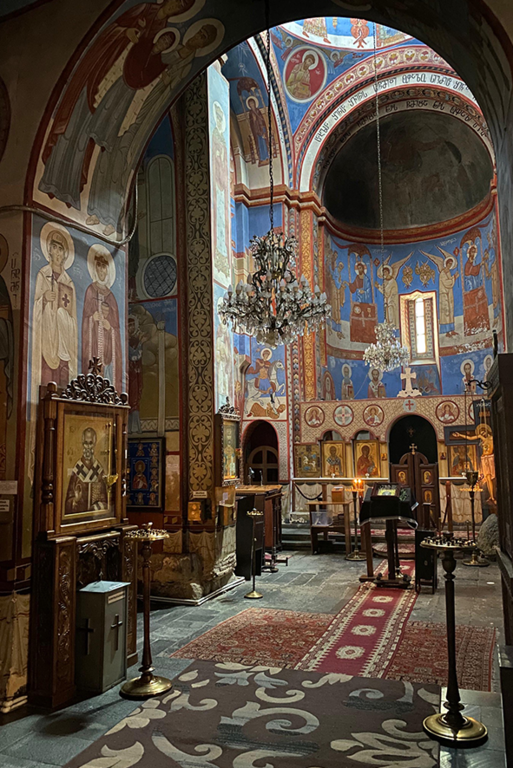 Una cosa che mi ha colpita molto in Georgia è la spiritualità, vissuta in modo spontaneo, quotidiano. Anche i giovani sono molto credenti. A Tbilisi, ogni volta che un tassista o un autista passa davanti ad un luogo di culto, si fa il segno della croce. E non uno solo, tre: come da tradizione ortodossa. Dentro le chiese, a qualsiasi ora del giorno o della notte, entrano ragazzi, studenti, coppie giovani. Anche solo per accendere una candela, fermarsi un attimo. È un gesto naturale, quasi come respirare. Nel mio secondo viaggio ho assistito alla messa di Pasqua, celebrata di notte. Non ci sono panche: si sta in piedi, in silenzio, ascoltando i canti liturgici dalla tradizione millenaria. Un’intensità che non avevo mai vissuto altrove. Anche per chi non è credente, è un’esperienza forte, che ti scava dentro.