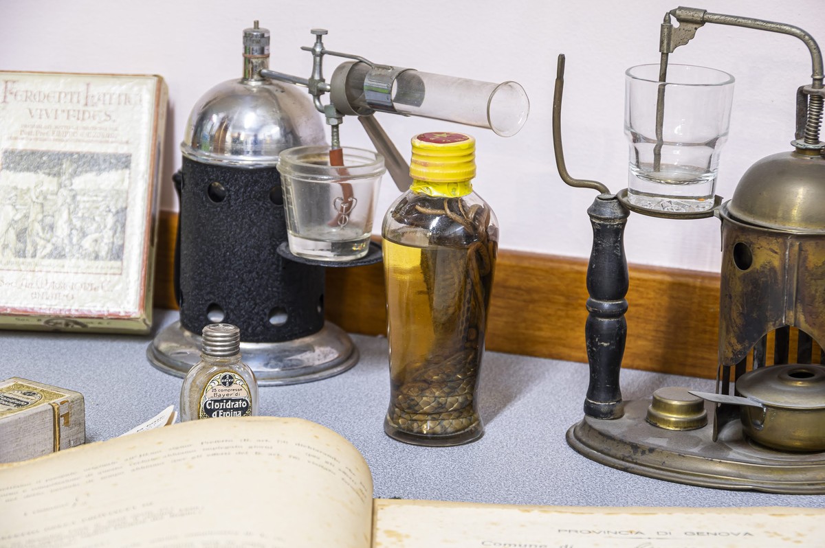 Accanto all’attività professionale, anche una passione collezionistica che racconta la storia della farmacia. “Quassù ho una collezione di nebulizzatori in rame, nichel e acciaio. Ne compro ancora alle fiere. Poi ho mortai, ebulliometri, apparecchi per misurare il punto di fusione delle sostanze, strumenti da laboratorio del passato”. Un piccolo museo privato, testimonianza dell’evoluzione del mestiere. Non mancano, poi, le vecchie scatole di medicinali, alcune piccolissime, altre che contenevano sostanze che, oggi, non sono più considerate legali.
