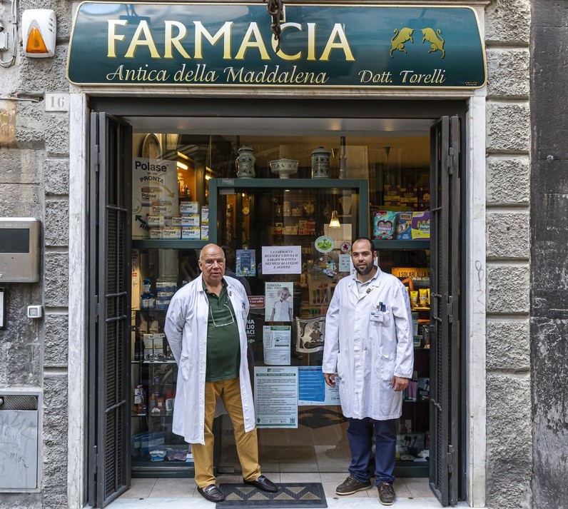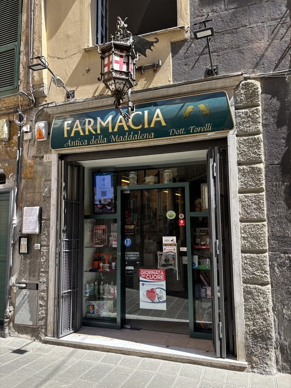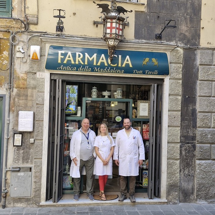 Quattro secoli di vita, ma portati benissimo: l’Antica Farmacia della Maddalena, nella via omonima dal 1600, è un vero e proprio punto fermo per il centro storico. Dal 1985 è Roberto Torelli a portare avanti l’attività, con impegno, dedizione e amore per la professione: “Ho conosciuto i vecchi titolari, erano tre generazioni che si succedevano e ci lavoravano sin da prima dell’Ottocento. Io sono arrivato 40 anni fa. Poi sono arrivati i miei figli, la seconda generazione” spiega. Nel tempo, la farmacia si è evoluta: “Abbiamo aperto altre sedi, ma questa rimane il cuore, la numero uno. Qui è registrata la sede legale e amministrativa”. Oggi fanno parte del gruppo Farmacia Torelli S.r.l., e l’Antica Farmacia della Maddalena è diventata il fulcro attorno a cui ruotano le altre attività a Camogli e Bolzaneto.