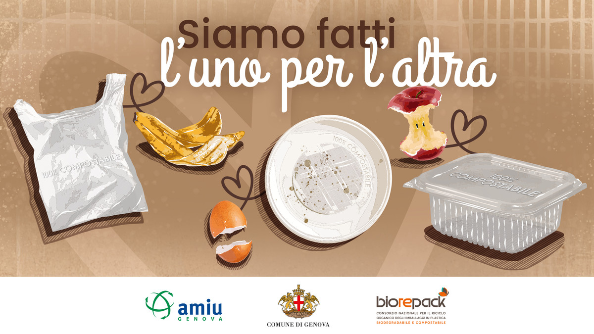 "Un amore destinato al contenitore": è questo il messaggio ironico, ma con un fondo di verità ambientale, al centro della nuova campagna lanciata oggi a Genova: “Fatti l’uno per l’altra”, promossa da AMIU Genova e Consorzio Biorepack con il sostegno del Comune. L’iniziativa, presentata ufficialmente a Palazzo Tursi, punta a migliorare la raccolta differenziata della frazione organica e la corretta gestione degli imballaggi in bioplastica compostabile, attraverso un racconto visivo ed emotivo che parla di compatibilità e destino comune.