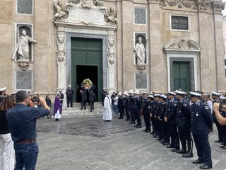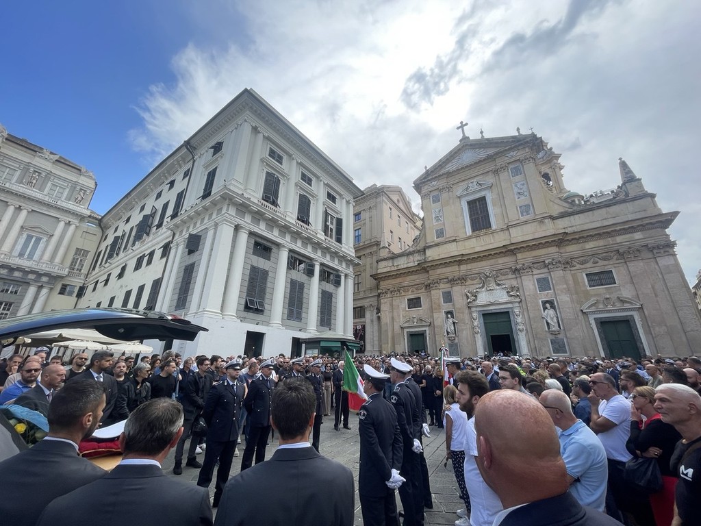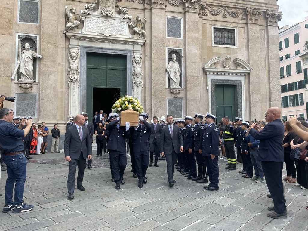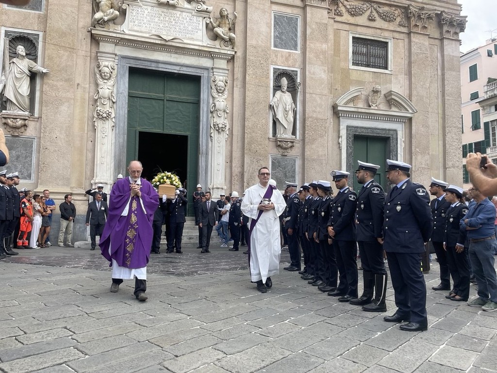 A stringersi intorno alla famiglia di Alessio, alla compagna Patrizia, ai genitori e al fratello c’erano i colleghi della Polizia Locale, i motociclisti e gli agenti in forze ai distretti della città, i colleghi di Amt, dove Alessio aveva lavorato prima di diventare agente, ma anche la comunità tutta, assieme al presidente della Regione Marco Bucci, alla sindaca Silvia Salis a numerosi assessori e assessore della Giunta comunale, membri del consiglio di maggioranza e opposizione, a testimoniare anche la vicinanza delle istituzioni alla famiglia e al corpo della Locale.