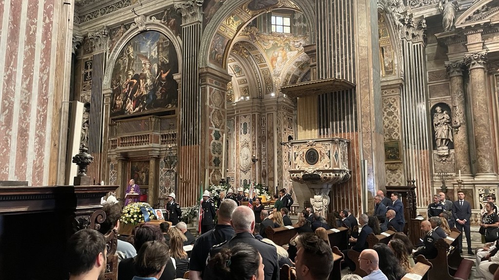 Centinaia di persone hanno affollato il sagrato e la chiesa del Gesù di piazza Matteotti per l’ultimo saluto ad Alessio Gaglia, l’agente di trentuno anni morto in servizio dopo essere rimasto coinvolto in un incidente in via Pedullà, a Struppa.