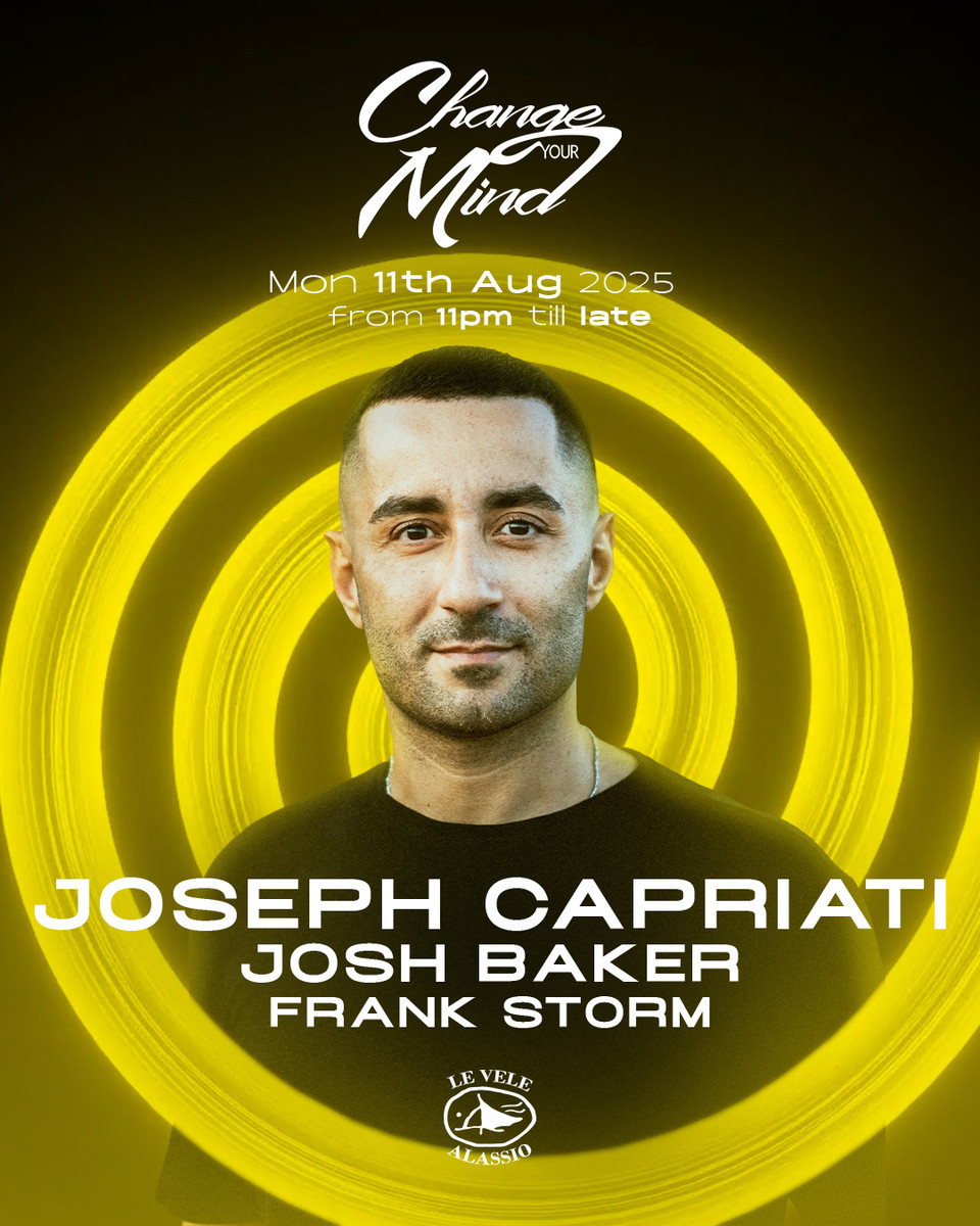 Gran finale lunedì 11 agosto con il ritorno di Change Your Mind, e un ospite d'eccezione: Joseph Capriati, tra i nomi più rispettati della scena elettronica mondiale. Con oltre vent'anni di carriera e una forte identità artistica, Joseph Capriati incarna energia, tecnica e passione allo stato puro. In apertura e chiusura: Josh Baker e Frank Storm. Una serata da non perdere!
