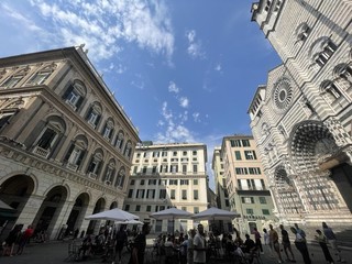 La facciata neorinascimentale, con le sue ampie finestre incorniciate da stucchi elaborati e l’elegante porticato, dialoga armoniosamente con la vicina Cattedrale di San Lorenzo. All’interno, gli affreschi narrano storie di potere, arte e famiglia, testimoniando il ruolo centrale che Palazzo Bendinelli Sauli ha avuto nel panorama culturale genovese.