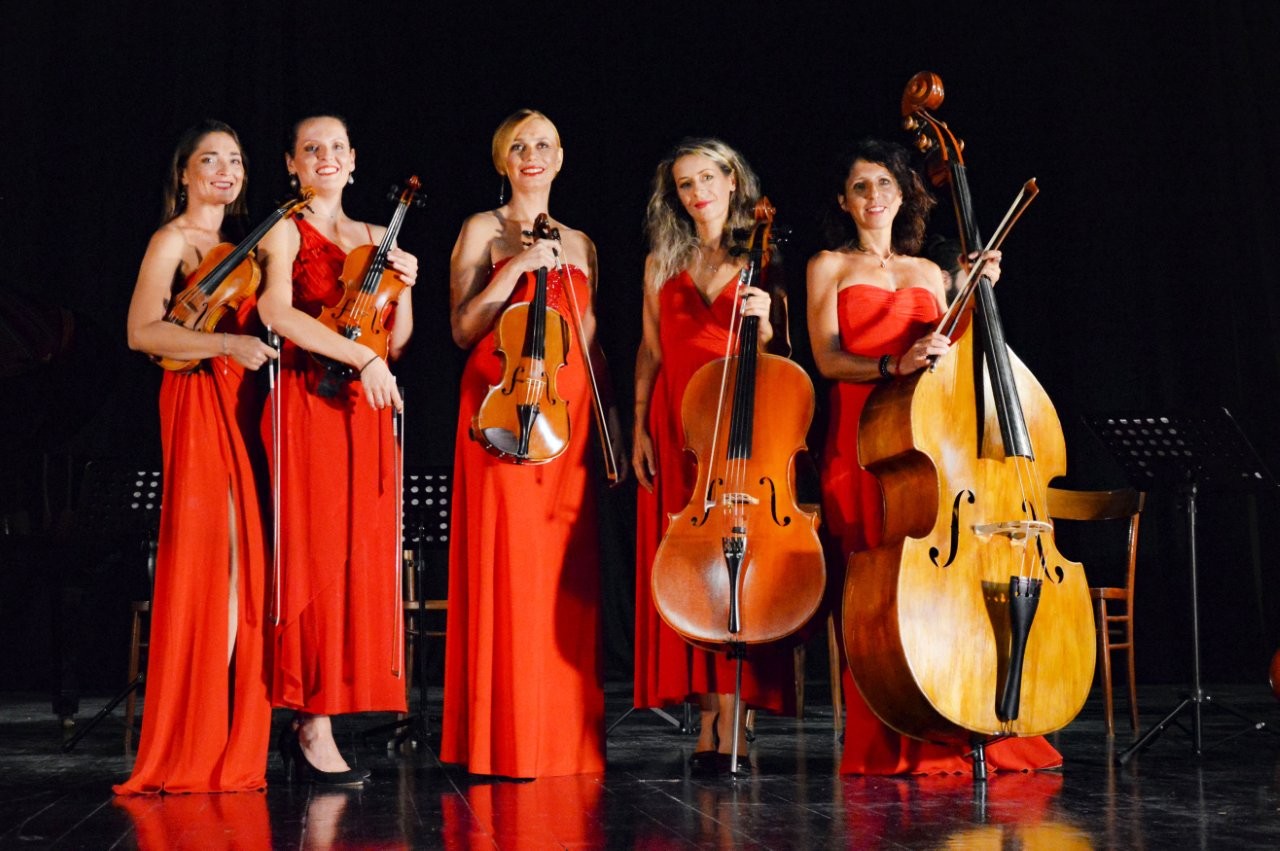 La parte musicale è affidata all’ensamble Le Muse, già protagonista più volte, sempre con grande successo, a Villa Scarsella. Le cinque fuoriclasse degli archi sono Alessandra Dalla Barba e Livia Alexandra Hagiu (violino), Irina Balta (viola), Chiara Alberti (violoncello), Michela Gatti (contrabbasso). Un quintetto che da anni, sotto la direzione del M° Andrea Albertini si esibisce in Italia e all’estero nelle principali sale da concerto, nell’ambito di prestigiosi festival, avendo avuto anche l’onore di aprire eventi di carattere istituzionale e mondano.
