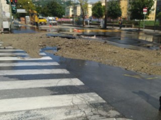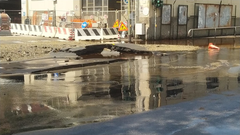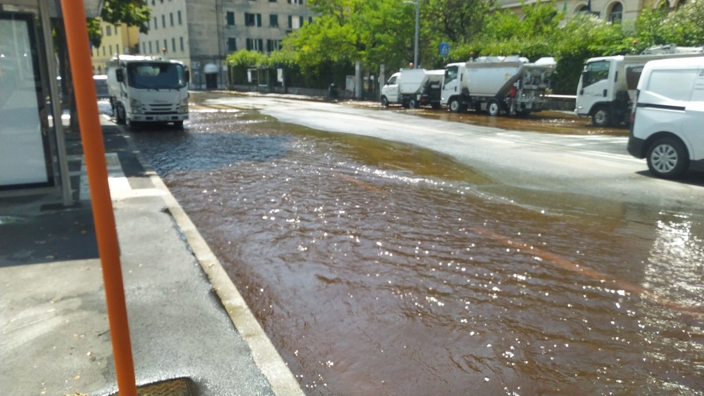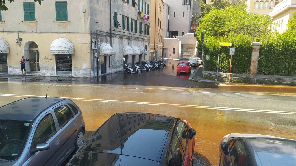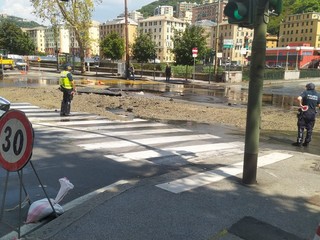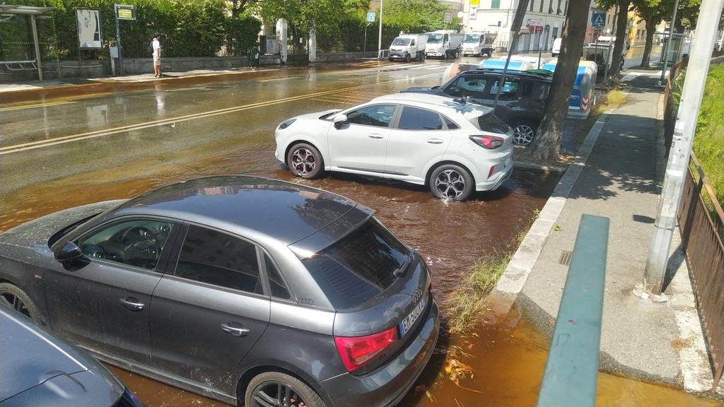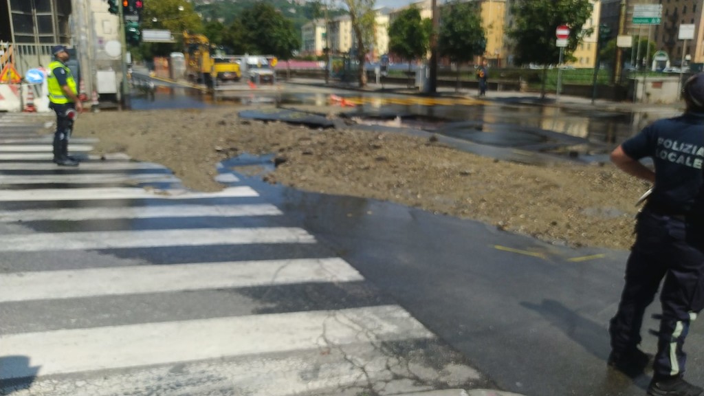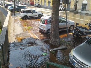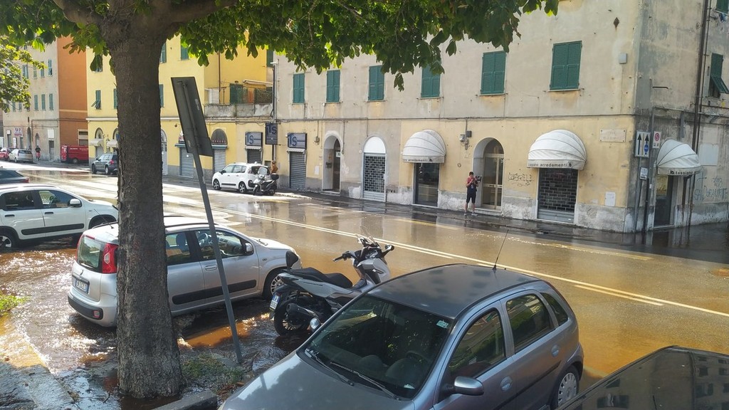 Si spacca un tubo dell’acqua, strada allagata tra via Bobbio e via Montaldo