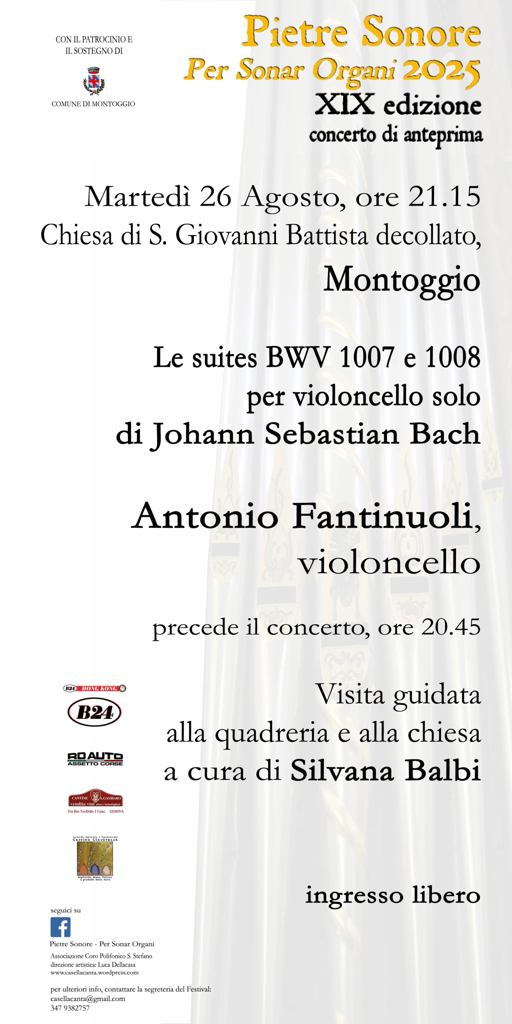 A causa del degrado dell’organo Parodi e Marin degli anni Trenta, costruito su un precedente strumento di Filippo Piccaluga del 1774 e oggi non più funzionante, non sarà la tastiera a risuonare tra le navate ma il violoncello. Fantinuoli proporrà le prime due Suites per violoncello solo di Johann Sebastian Bach, tra le opere più celebri del repertorio barocco.