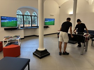 Il secondo lotto, invece, sarà concluso entro la fine del 2026 e porterà al completamento del restauro della chiesa sconsacrata, all’ampliamento della zona mensa, al recupero conservativo della torre con tre camere ulteriori, al restauro del lato Ovest della palazzina, alla realizzazione di una palestra con centro riabilitativo e di due campetti per la riatletizzazione. Negli spazi esterni verranno poi aggiunti alberi con verde decorativo e arredi da esterno, mentre nel cortile centrale verrà allestito il pergolato.