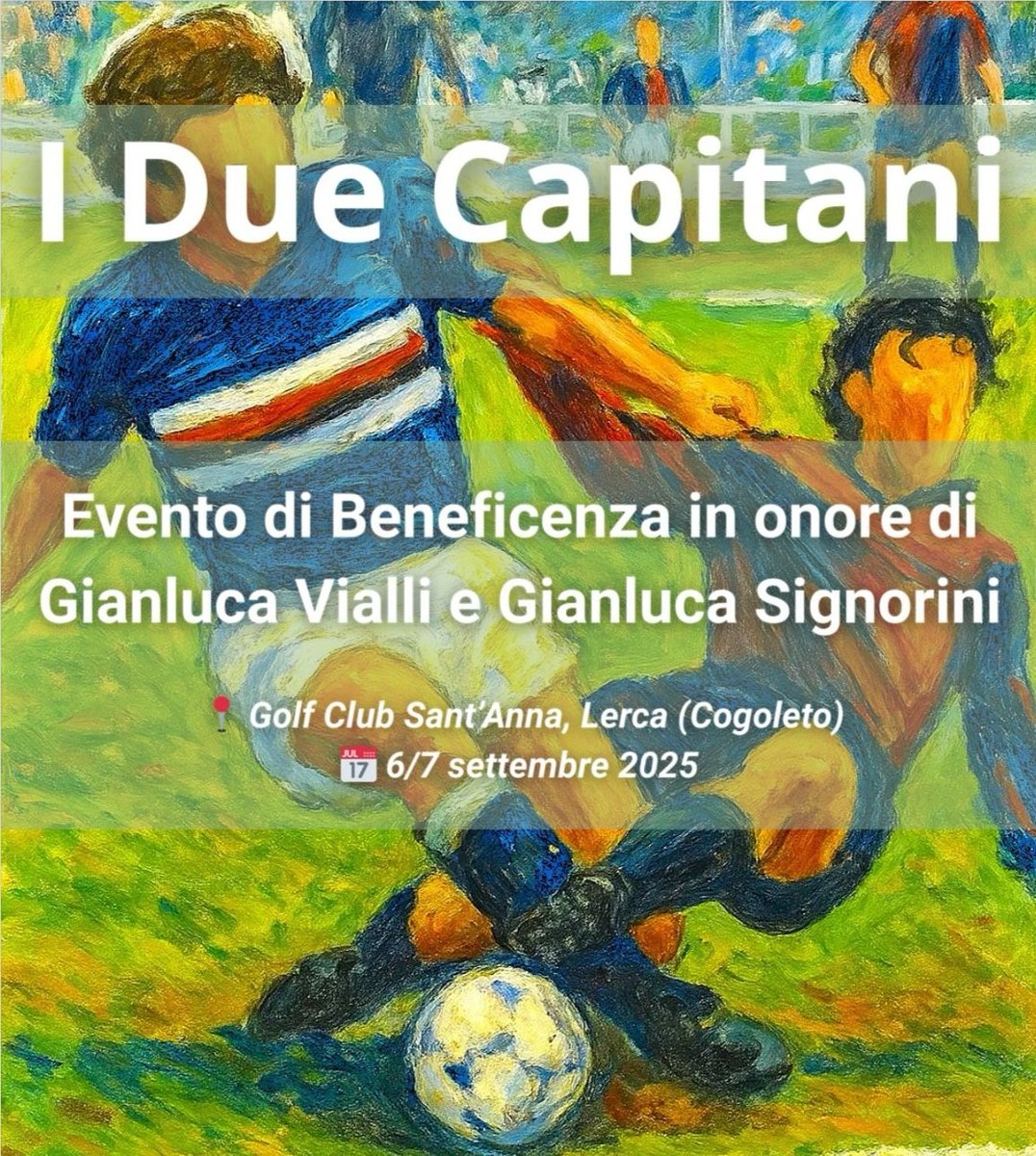 Una due giorni di sport, amicizia e solidarietà animerà il Golf Club Sant’Anna di Lerca, a Cogoleto, sabato 6 e domenica 7 settembre, con l’evento “I Due Capitani”. L’iniziativa, organizzata da CNA Genova ed ECIPA in collaborazione con Rotary Club Turchino e Golf Club Sant’Anna, rende omaggio a due leggende del calcio genovese e italiano: Gianluca Vialli e Gianluca Signorini, simboli di lealtà e sportività che hanno legato la loro amicizia oltre le rivalità tra Genoa e Sampdoria.