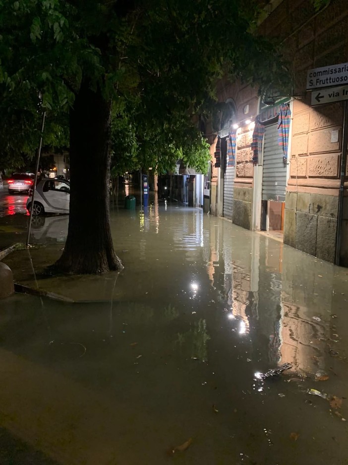 Maltempo in Val Bisagno, allagamenti, alberi caduti e auto danneggiate a Piazza Martinez e via D’Albertis