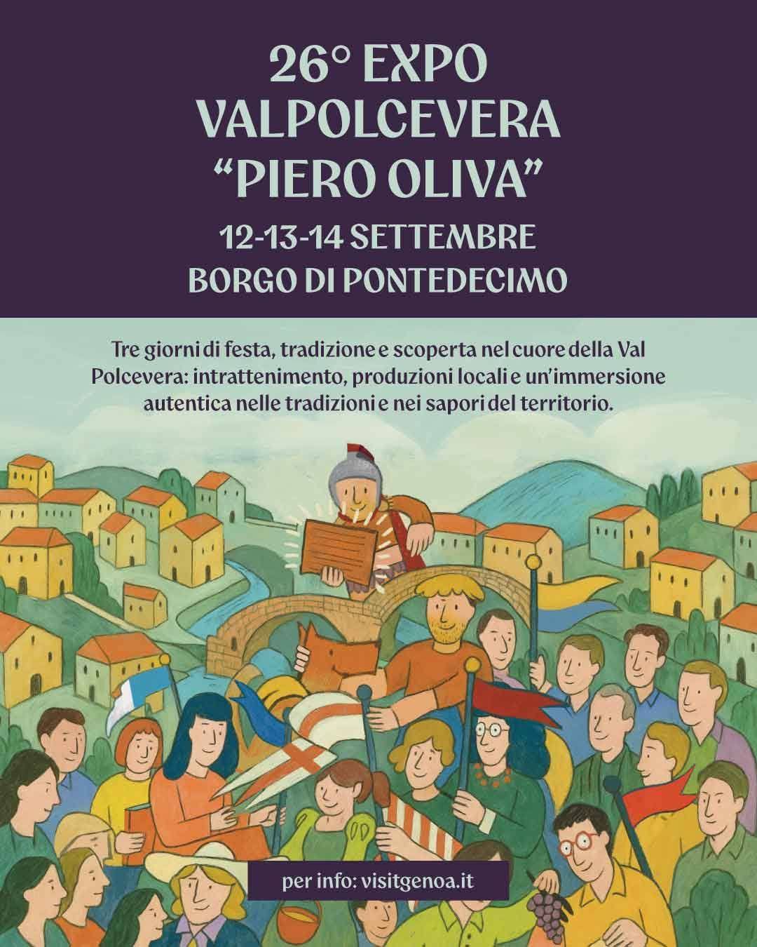 Dal 12 al 14 settembre Pontedecimo ospita la ventiseiesima edizione dell’Expo Valpolcevera, quest’anno dedicata alla memoria di Piero Oliva, co-fondatore e anima storica della manifestazione. L’evento unisce commercio, enogastronomia e identità locale, con un ricco programma che spazia dal Medieval Expo alla Fiera Annonaria, dalle degustazioni alle sfilate. Momento clou domenica 14 settembre con il 31° Corteo Storico “Tavola Bronzea di Polcevera”, che vedrà sbandieratori, musici e figuranti in costume attraversare le vie del borgo. Gran finale con la tradizionale “Maxi Torta dei Genuati” offerta a tutti i visitatori.