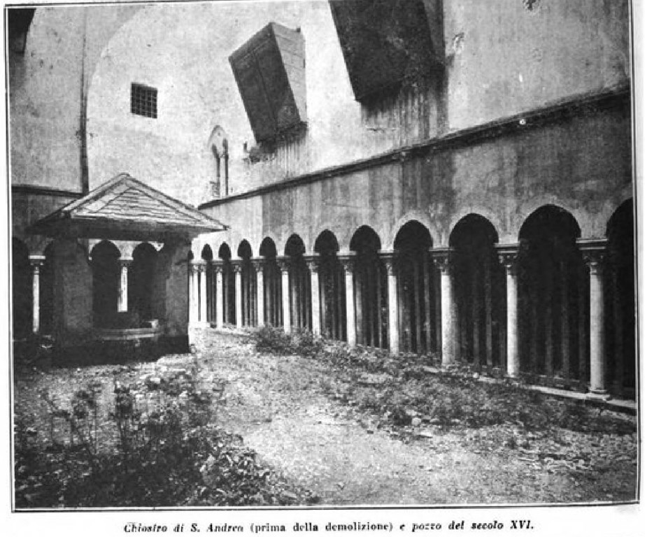 L’unico elemento a salvarsi dalla demolizione del 1905 fu proprio il chiostro, smontato e rimontato nel 1922 nella sua attuale collocazione, ritenuto a detta di tutti troppo bello per essere distrutto.
