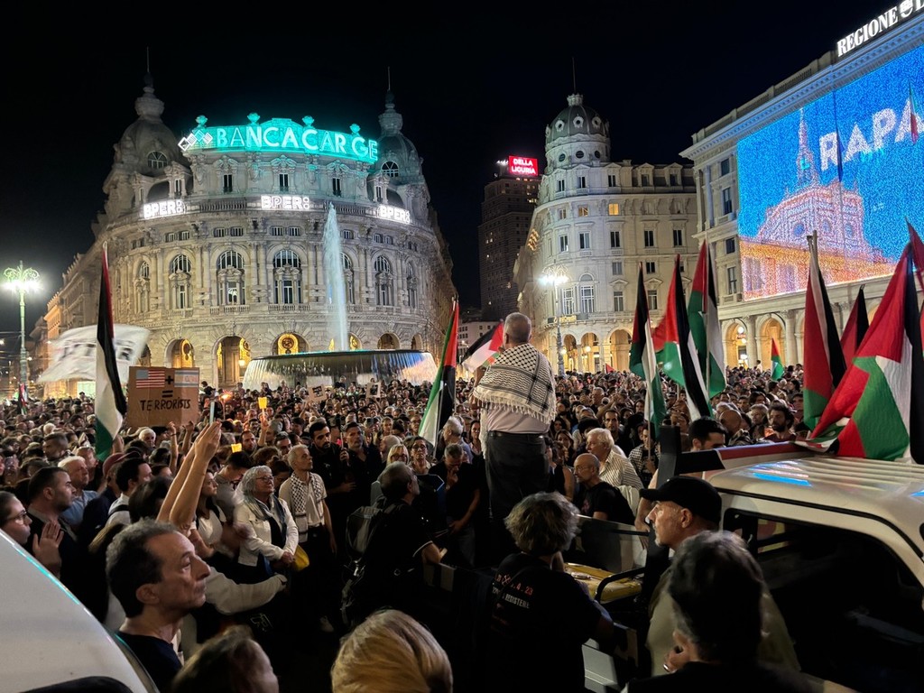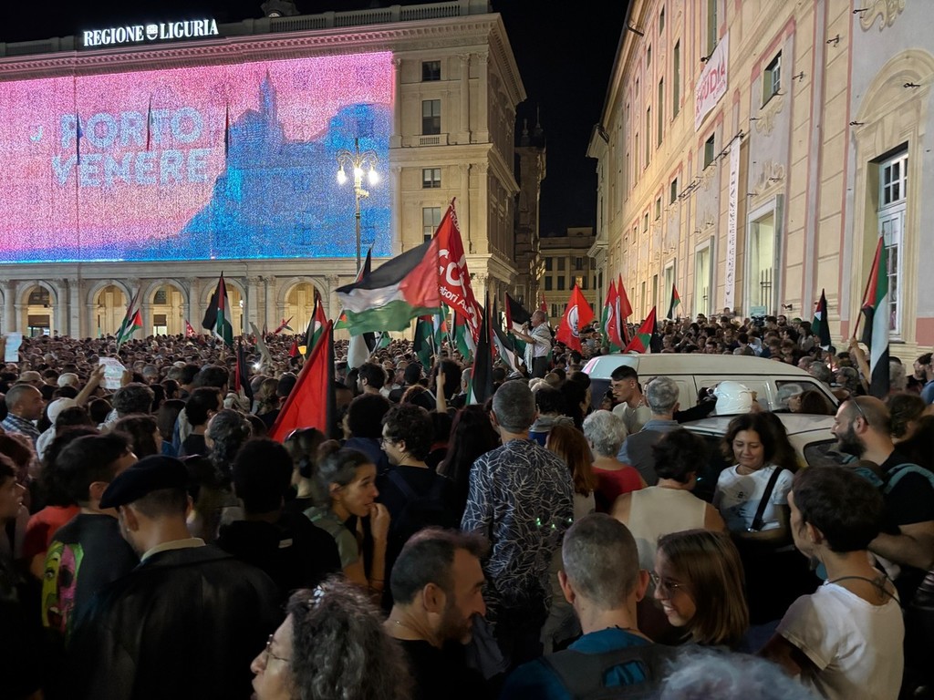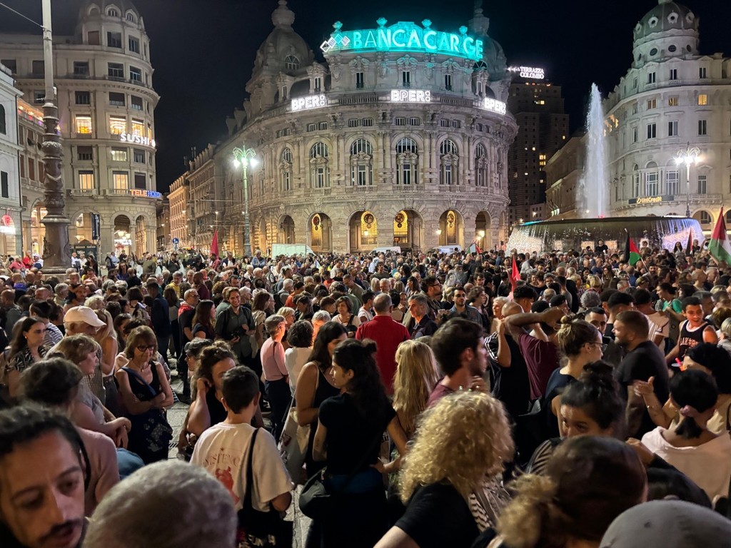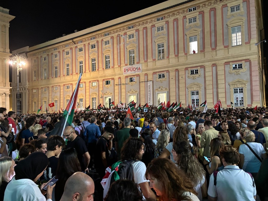 Migliaia di persone, tra cui tanti giovani, bambini e famiglie, in Piazza De Ferrari per il presidio promosso da Music for Peace. L’appuntamento, inizialmente legato all’“ora del silenzio”, è stato prolungato fino alle 20 di oggi, mercoledì 17 settembre.