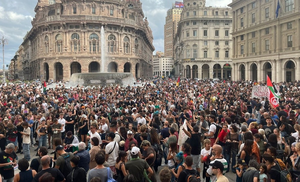 È entrata nel vivo la seconda parte della lunga giornata di mobilitazione in occasione dello sciopero generale indetto dai sindacati di base a sostegno della popolazione di Gaza e della missione della Global Sumud Flotilla. A Genova, dopo il blocco del porto avviato stamattina al varco di San Benigno dai lavoratori dell’Usb e di altre sigle, la protesta è proseguita con un maxi corteo dove hanno preso parte migliaia di cittadini.