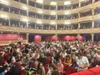 “In uno dei teatri più belli della città è un piacere salutare e accogliere il coro dei giovani palestinesi che arrivano a Genova, che è città della musica, senza bisogno di titoli - ha aggiunto Giacomo Montanari, assessore alla Cultura del Comune di Genova - una città di mare che si affaccia sul Mediterraneo, determina relazioni, scambio, multiculturalità. Noi dobbiamo accogliere queste onde che arrivano dalla costa martoriata del genocidio di Gaza. Onde fisiche con scopo di cortina stesa, per coinvolgere un modo che si sente assolto, ma deve essere sempre più coinvolto. Il coro è uno strumento democratico dal punto di vista musicale, ogni voce è armonizzata. È un messaggio di speranza. Parlare di musica è un discorso di pace e fratellanza. Fuori da ogni divisione pratica, cantare insieme vuol dire armonia condivisa. Un canto per impegnare i governi del mondo, un canto di pace per la Palestina finalmente libera”.