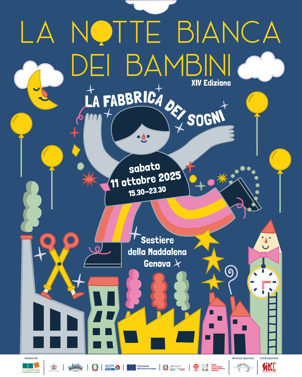 Torna l’appuntamento più atteso dell’autunno per bambine, bambini, famiglie e per la città: la Notte Bianca dei Bambini, che sabato 11 ottobre 2025, a partire dalle ore 15:30, animerà le vie e le piazze del Sestiere della Maddalena con laboratori, giochi, spettacoli, musica e momenti di festa.