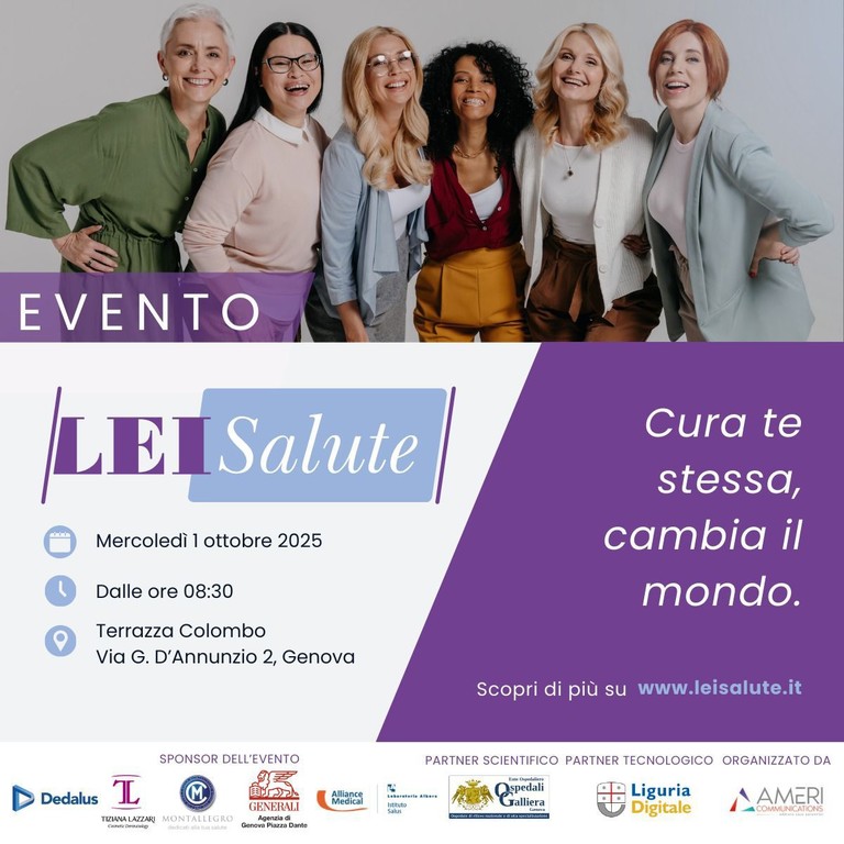 “LEI Salute rappresenta un’occasione preziosa per promuovere un approccio alla salute che sappia riconoscere e valorizzare le differenze di genere. Parlare di medicina personalizzata, di prevenzione e di benessere femminile – ha dichiarato Simona Ferro, Assessore a Pari Opportunità, Tutela e Valorizzazione dell'infanzia, Politiche giovanili di Regione Liguria - vuol dire non solo tutelare la salute delle donne, ma anche costruire una società più equa e consapevole. Regione Liguria sostiene con convinzione questa iniziativa, consapevole del valore di una rete che unisca istituzioni, professionisti e associazioni per offrire risposte concrete alle nuove sfide della salute e della parità. Proprio nel 2025, nell’ambito del Sistema di monitoraggio della dimensione di genere, l’Ente ha promosso la creazione di un tavolo di lavoro specifico dedicato a questo tema”.