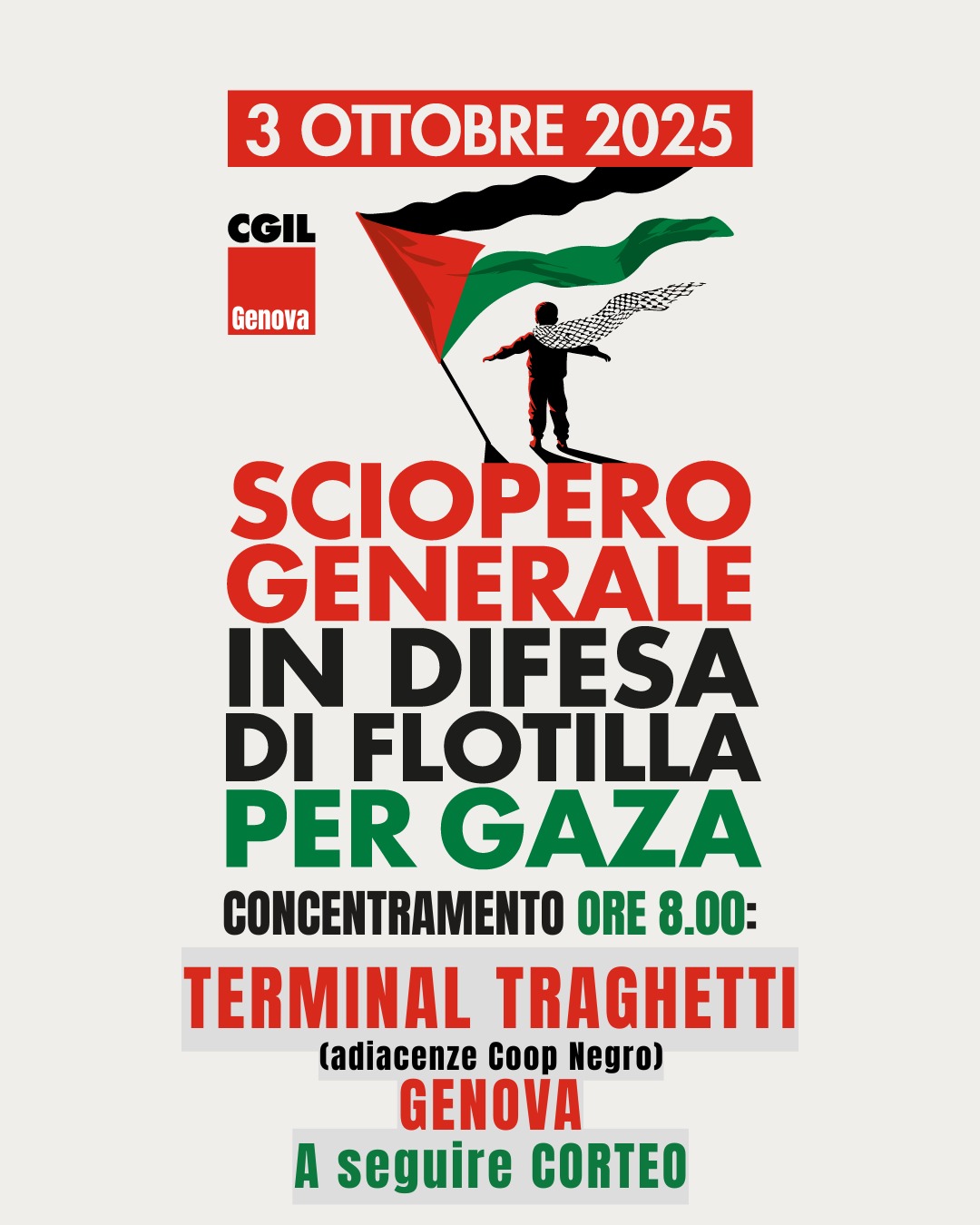 La Cgil ha annunciato per venerdì 3 ottobre uno sciopero generale nazionale che coinvolgerà tutti i settori pubblici e privati. La mobilitazione, che durerà l’intera giornata, è stata proclamata in seguito all’aggressione contro le navi civili della Flotilla, a bordo delle quali si trovavano cittadine e cittadini italiani.