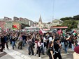 Subito dopo la notizia sullo stato di salute dei due imbarcati a bordo della Flotilla, il presidio dei manifestanti si è sciolto e i partecipanti sono tornati in corteo nella zona di Varco Albertazzi.