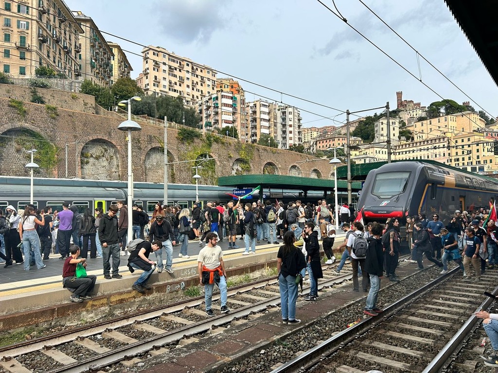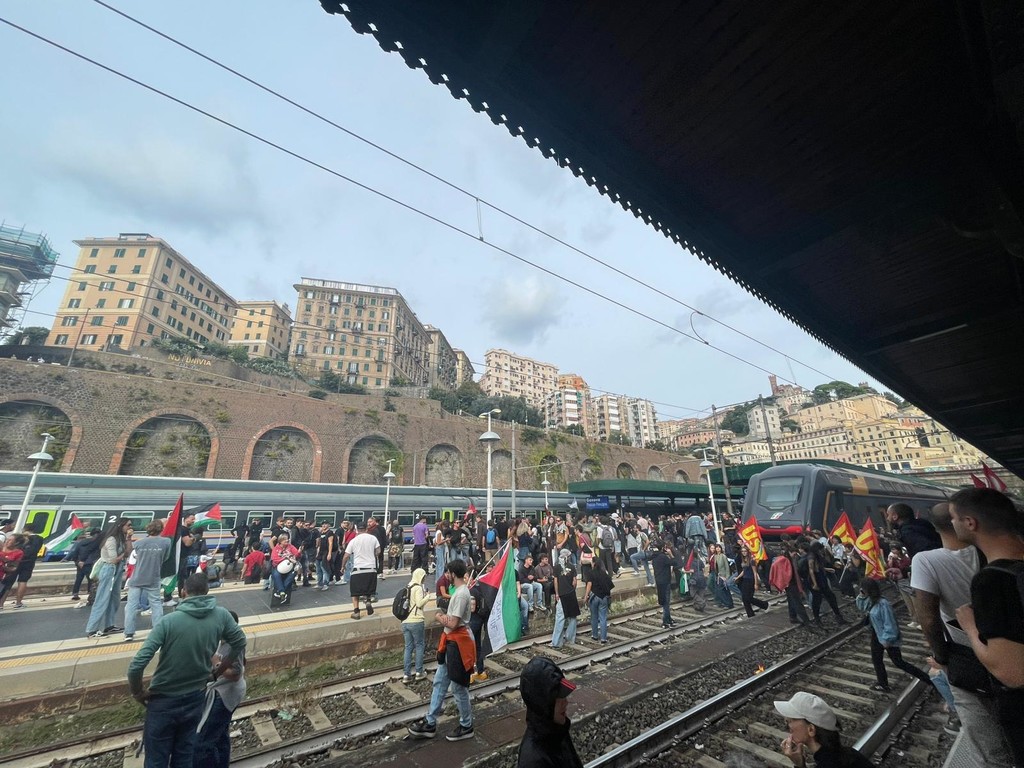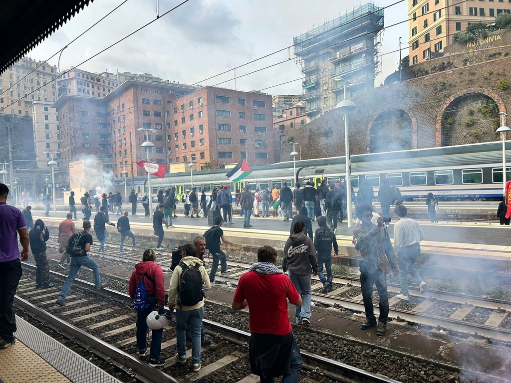 I manifestanti, membri dell'Unione Sindacale di Base, del Calp, alcuni studenti e un piccolo gruppo di anarchici, hanno iniziato a spostarsi in direzione centro, passando sotto alla Sopraelevata, intonando il coro 'Siamo tutti antisionisti'. L'obiettivo, al momento, sembra essere la Stazione di Genova Principe.